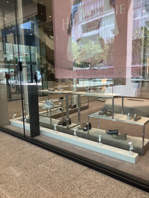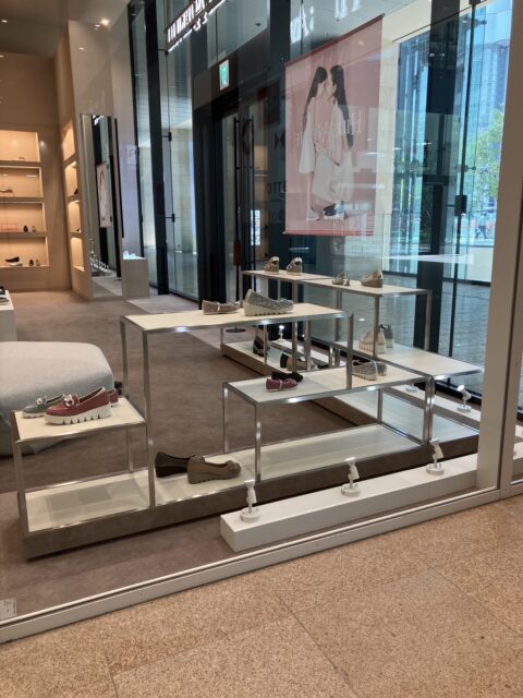ウメダ広告株式会社が行なったシューズ展示什器の施工についてご紹介いたします。